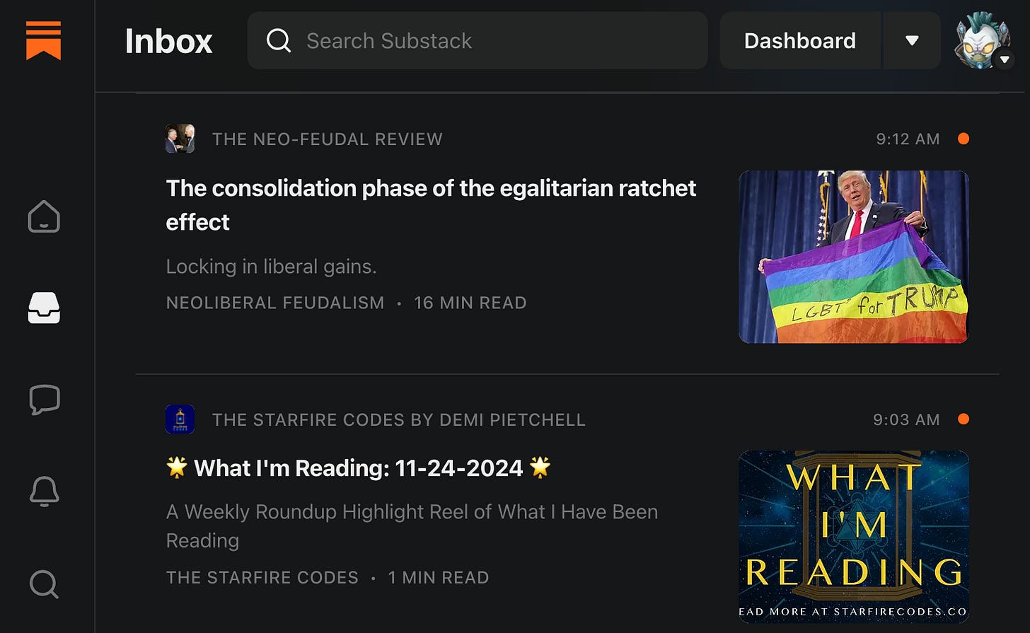 Anyway, now you know how to avoid getting sucked into the Notes feed. If I were Substack’s management, I would add a feature to the Substack app that allows users to choose which page they want to see when the app is started. Let users opt to view their inbox instead of their Notes feed.
